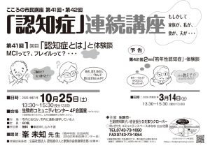 【予告】「認知症とは」と体験談 2025年10月25日開催 第41回 こころの市民講座